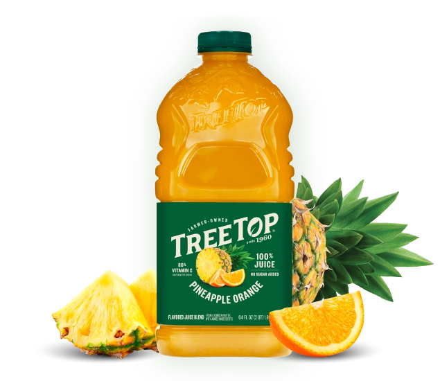 We believe in keeping our juice simple and wholesome. All our juice blends begin with ripe and juicy fruit – no added sugar and no high fructose corn syrup. Naturally sweetened and bursting with flavor, Tree Top Pineapple Orange is 100% juice your family will love!