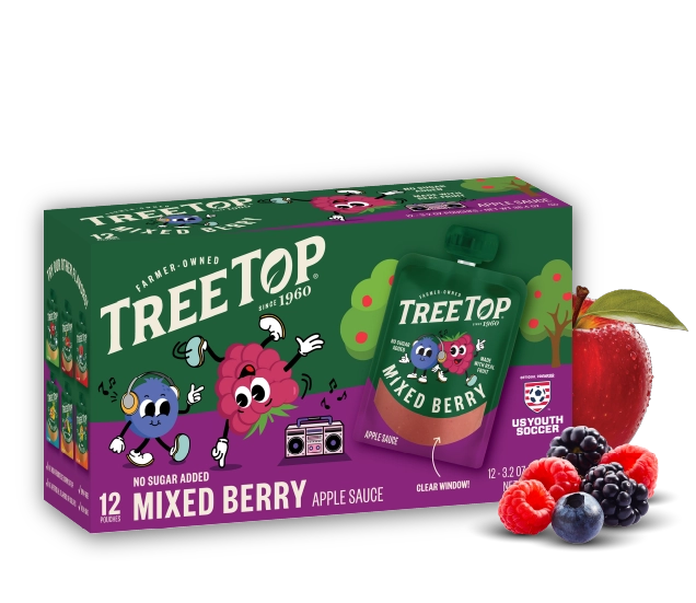 Take your Tree Top Mixed Berry Apple Sauce Pouches anywhere, any time! Every pouch is filled with deliciously squeezy apples that were picked at the peak of perfection. No spoon, no mess, and they’re good for the whole family! That’s what we call a win-win-win situation!